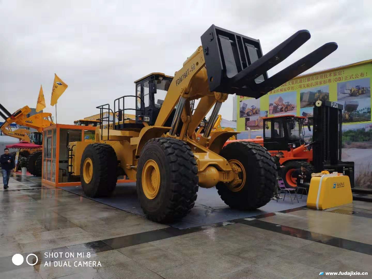 欧冠联赛联赛平台50吨叉装车亮相2019年厦门石材展